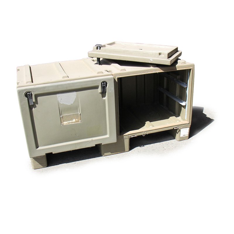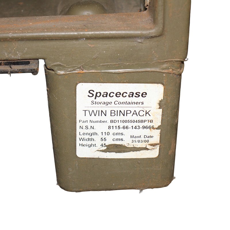 A double version of the Australian Army "BIN PACK" modular storage box by TRIMCAST with additional feet so that it can be moved by forklift