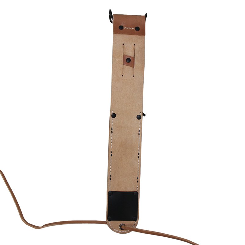 A rawhide thong on the end of the sheath allowed the user to tie the sheathed knife to his leg to prevent it from flapping when running.