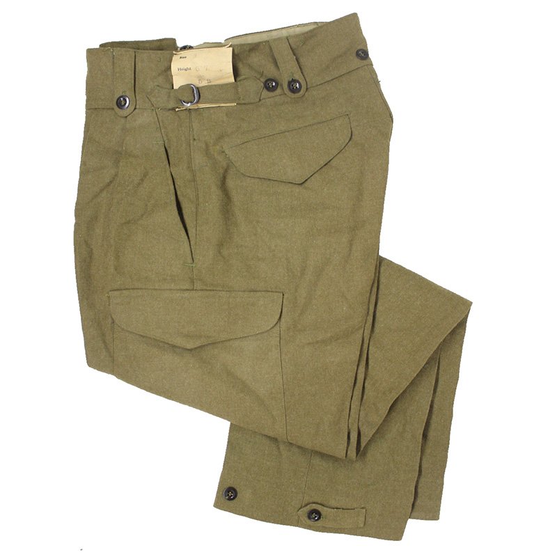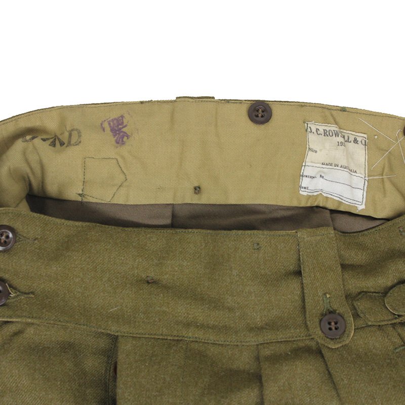 Original Australian pattern 1949 wool battledress trousers. Most are unissued with the tags still on, all are in pretty good condition considering their age.