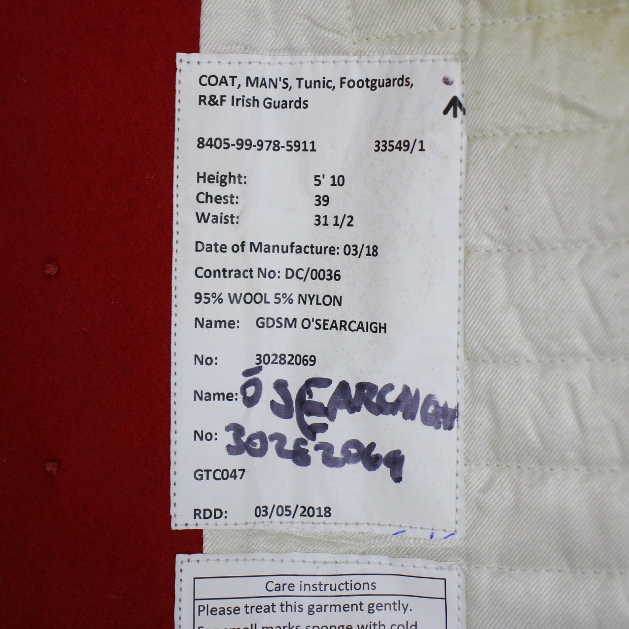COAT, MAN'S Tunic, Footguards,