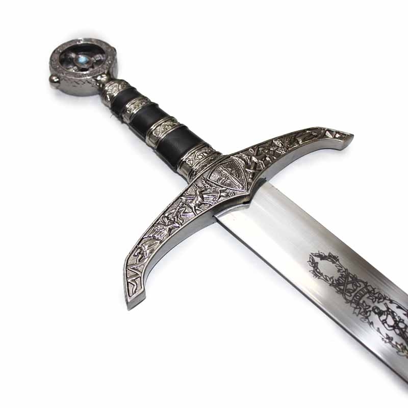 Historically, the Earl of Huntingdon is a title held by the Scottish rulers of Huntingdonshire, but in folklore, this title belonged to the legendary Robin Hood. You can honor this noble position with the Earl of Huntingdon Sword. This decorative sword is crafted from stainless steel, and its blade has been given a mirror finish, adding to its appeal. Its wheel pommel features an open-cross pattern that has become associated with Robin of Locksley. At the center of this cross is an emerald-colored jewel, and encircling the open cross is an inscription reading EARL OF HUNTINGTON. The center of its crossguard is embossed with the Cross of Richard the Lionheart, leader of the Crusades, and the quillons depict scenes of the hunt. The Earl of Huntingdon Sword makes a fantastic decorative blade for any lover of the legends of Robin Hood.